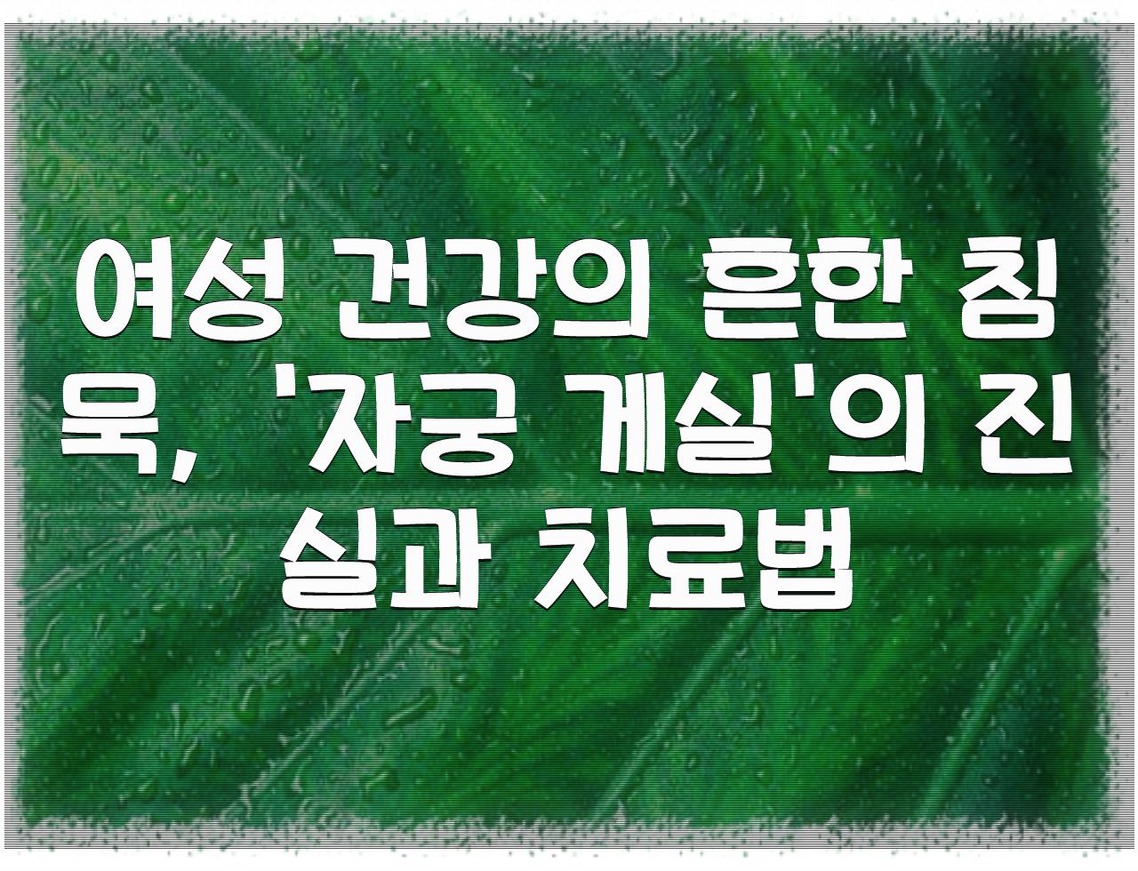 알아보자 :: 여성 건강의 흔한 침묵, '자궁 게실'의 진실과 치료법